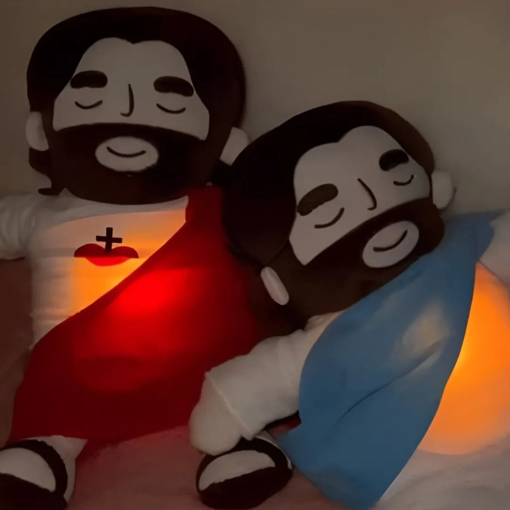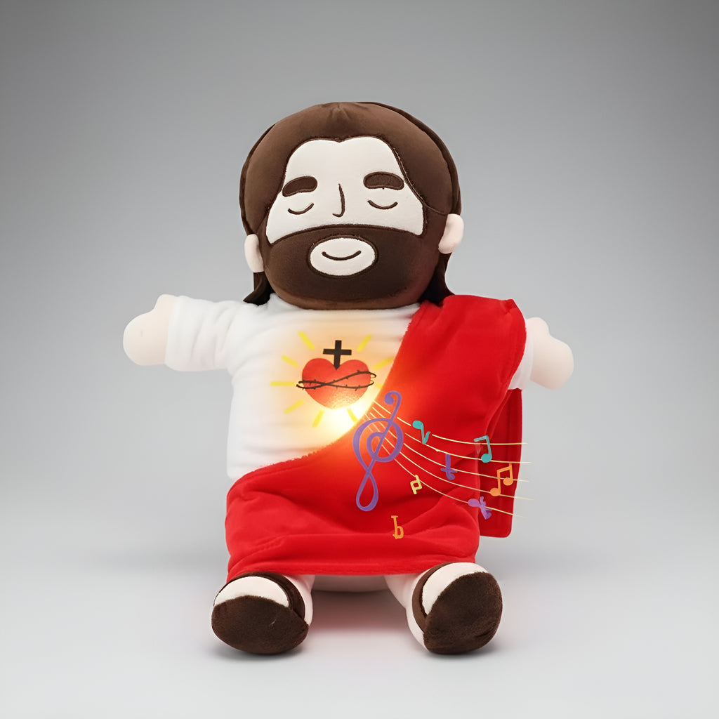 Pelúcia Calmante Menino Jesus que Respira – Brinquedo com Luz e Música para Sono do Bebê